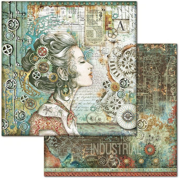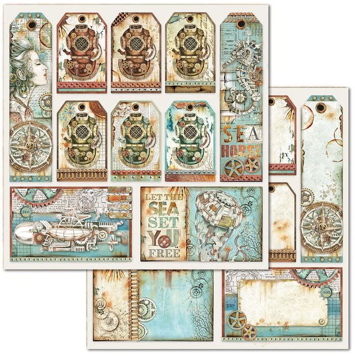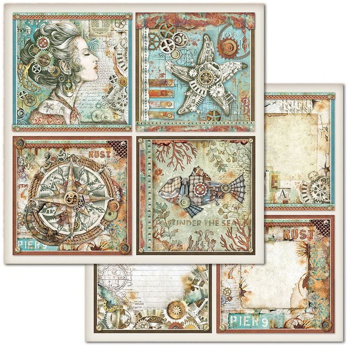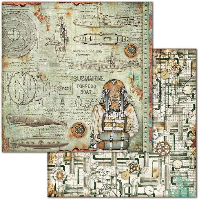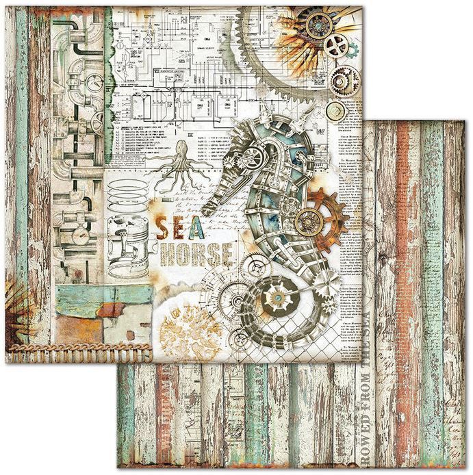 Комплект дизайнерска хартия - Mechanical Sea World - 10 двустранни листа