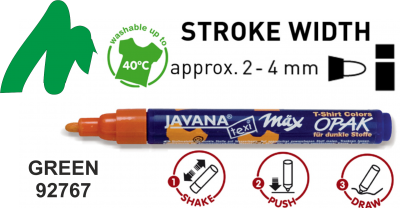 JAVANA OPAK max - Маркер за текстил 2-4 мм за ТЪМНА ОСНОВА - ЗЕЛЕНО
