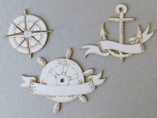Морски приключения - Рул, Компас и Котва - 3 бр.- 8,50 х 6,50 см