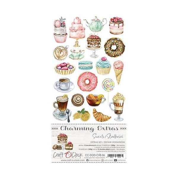 Комплект дизайнерска хартия с елементи за изрязване - SWEETS - 12 листа