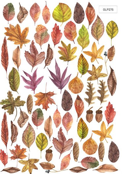 Комплект изрязани елементи - Watercolor autumn leaves - 51 бр.