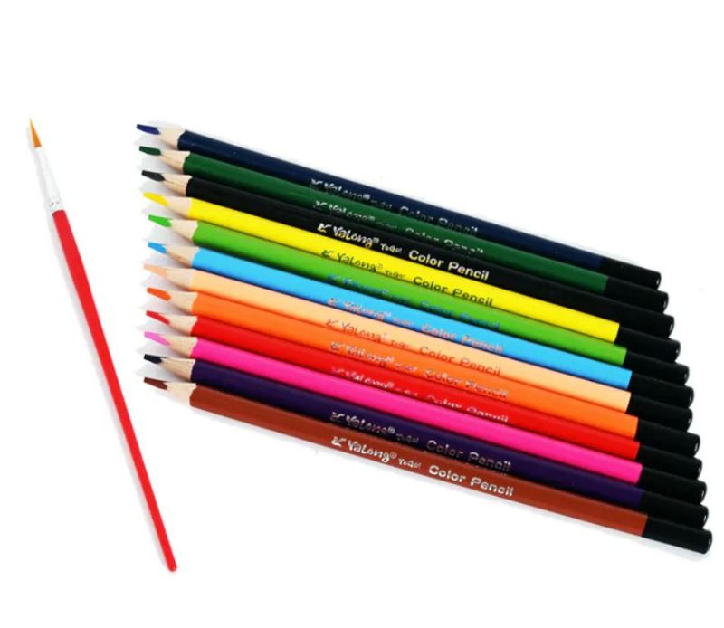 Комплекта съдържа 12 акварелни молива с ярки цветове и четка за разнасяне.