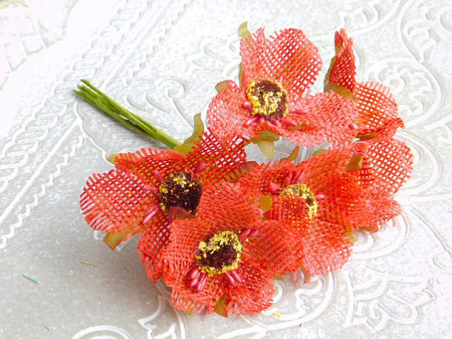 Букет цветя от зебло - Тъмен тюркоаз - 6 бр.