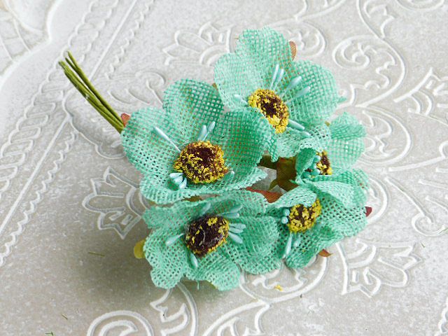Букет цветя от зебло - Светъл тюркоаз - 6 бр.