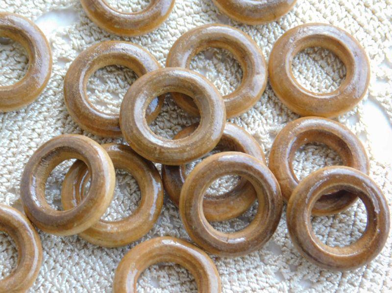 Дървена халка кафява с размери: диаметър 20mm, дебелина 5mm и размер на отвора 11.5mm.
