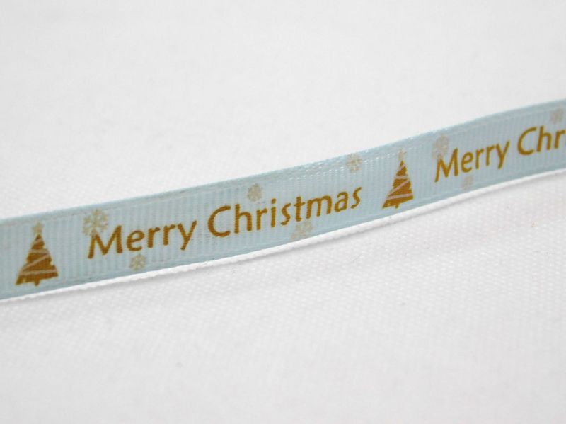Панделка рипс - Светло синьо Елхички Merry Christmas - 5 м.