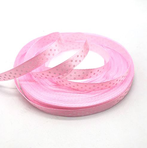 Панделка сатен на точки ролка- Наситено светло розово - 22 м.