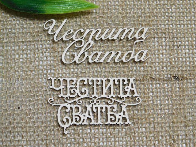 Надписи от бирен картон в два вида: 5,00 х 3,00 см и 5,50 х 2,50 см