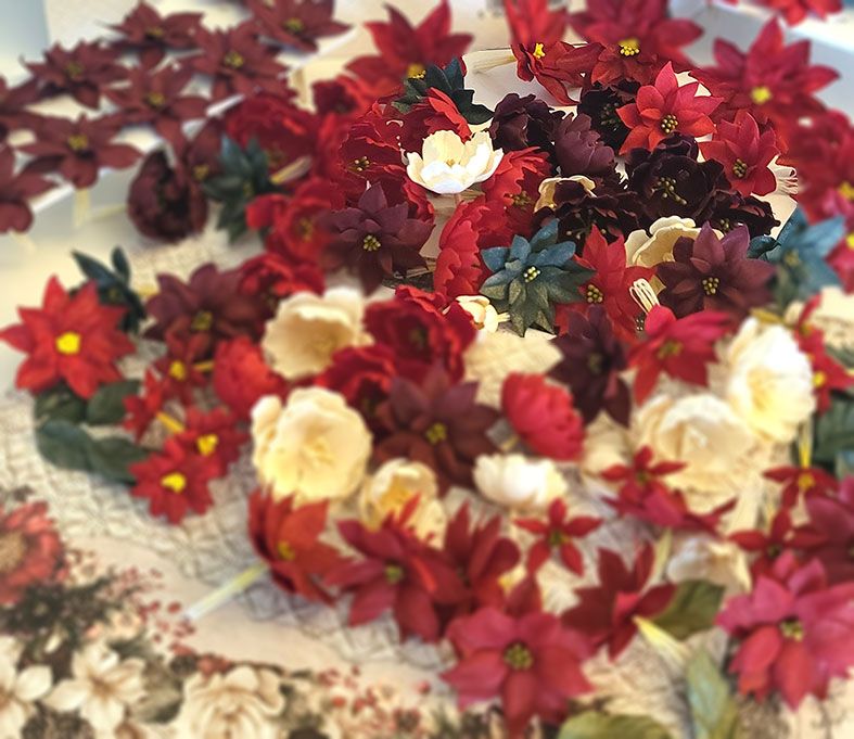 Ръчно изработени цветя от плат - Бордо - 1 бр.