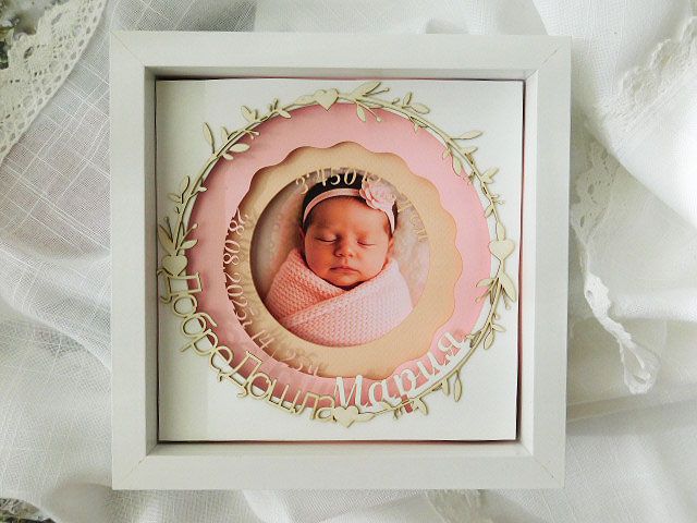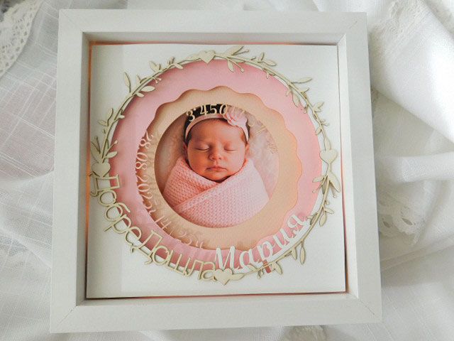 Персонализирано пано за новородено момиченце - 20 х 20 х 4 см