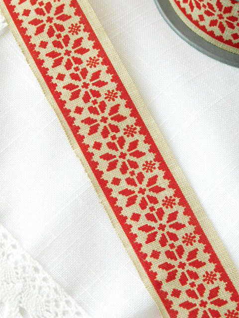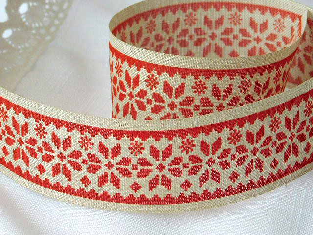 Начало Панделки, дантели и други Панделки Панделка - Лен с червени мотиви - 1 м.