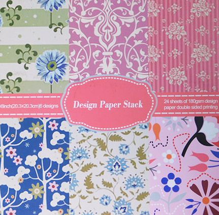 Комплект дизайнерска хартия включва 24 двустранни листа с 6 дизайна , по 4 листа от всеки дизайн