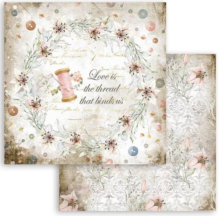 Комплект дизайнерска хартия - Romantic Threads - 10 двустранни листа