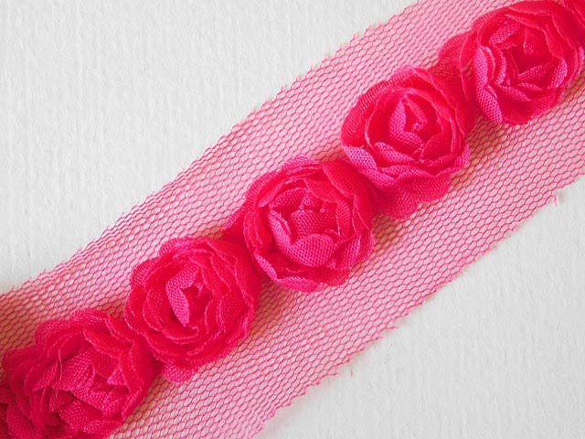 Начало Панделки, дантели и други Дантели Дантела Органза с рози - Циклама - 1 м