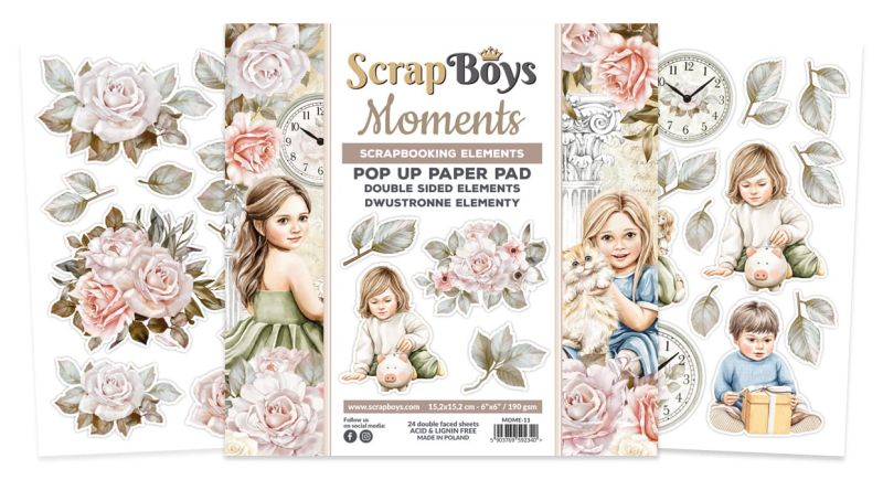 Дизайнерска хартия MOMENTS с елементи за изрязване перфектна за картички, албуми и скрапбук проекти!