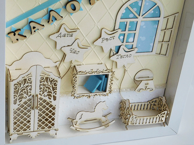 Триизмерни елементи за декориране на рамка, миниaтюри, експлодиращи кутии - за самостоятелно склобяване и лепене.