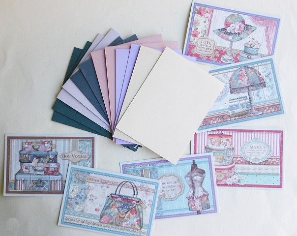 - 12 броя биговани и прегънати заготовки за картички с приблизителни размери 10,00 х 15,00 см.