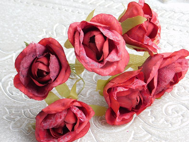 Начало Цветя,листа и тичинки Цветя и клонки Рози - Вишна с органза - 6 бр