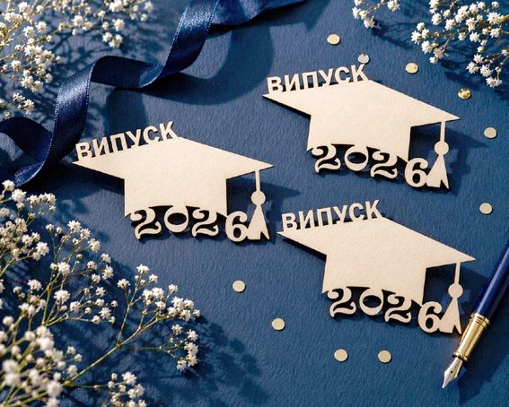 - Дизайн: Абсолвентска шапка с надпис "Випуск 2026" на български