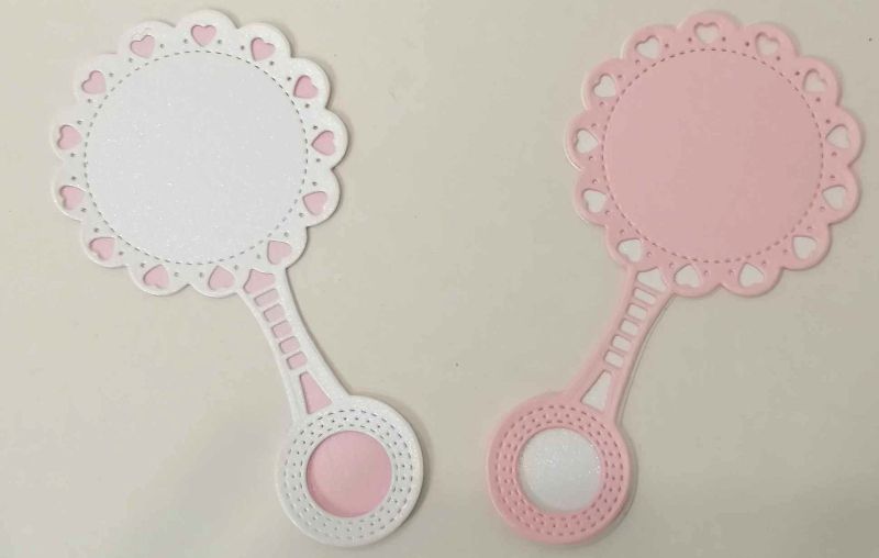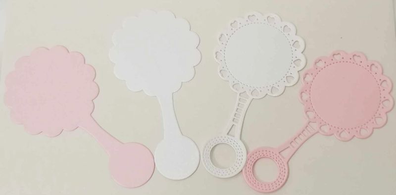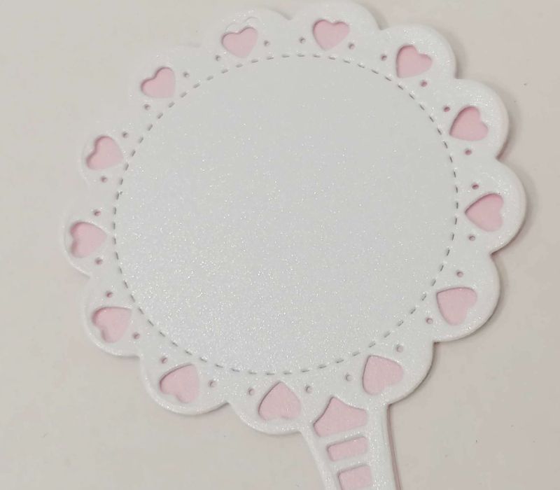 Елементи да декорация от перлен картон в два цвята- розово и бяло.