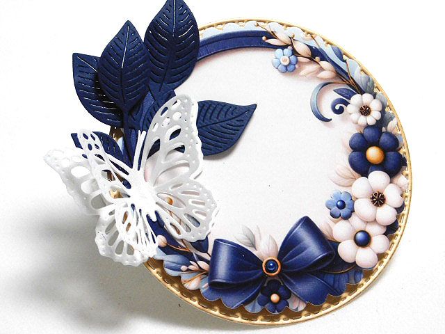 Композиция - Кръгла рамка Синьо с Панделка - 1 бр.