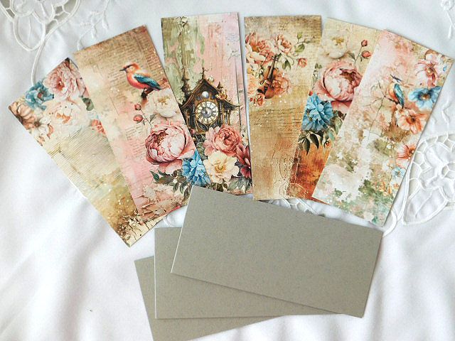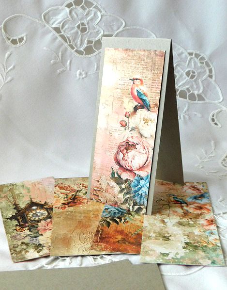 Комплекта включва 9 елемента - 3 броя картички с размери 15,00 х 6,50 см и 6 картона с избрани дизайни от колекцията на Craft O'Clock - Vintage Sonata