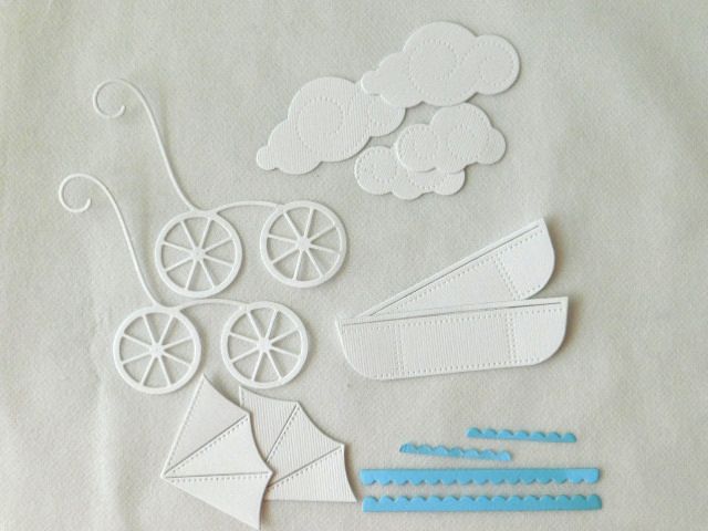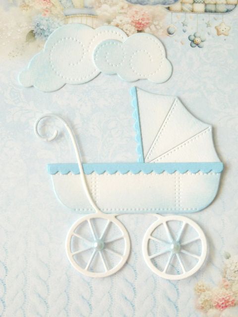 14 елемента за 2 броя бебешка количка с облачета за самостоятелно сглобяване и лепене.