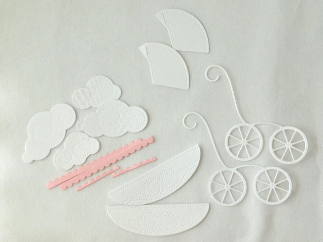 14 елемента за 2 броя бебешка количка с облачета за самостоятелно сглобяване и лепене.