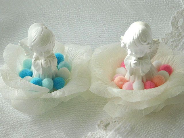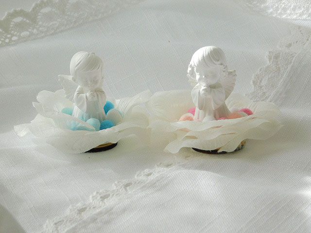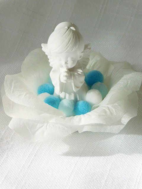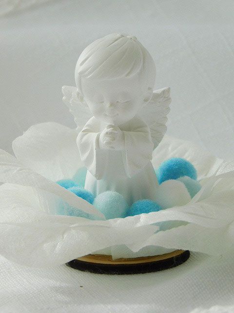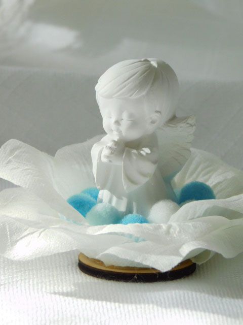 Керамично ангелче - Момченце декорирано в синьо и бяло.