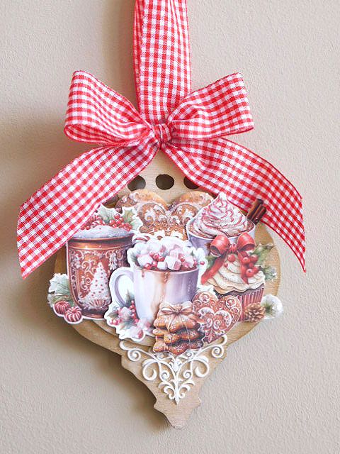 Ръчно изработено пано от дърво с декорации, декупаж и други приложни техники.