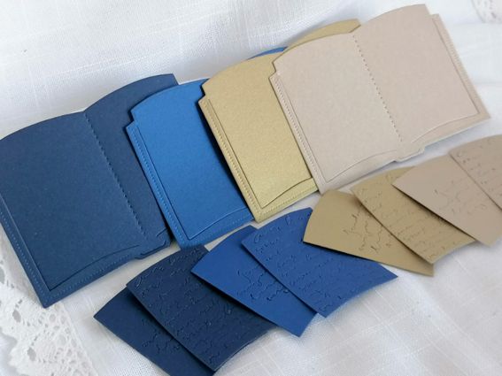 Комплекта включва 12 елемента от перлен картон - 4 основи и два броя станици за книга, за самостоятелно сглобяване и лепене