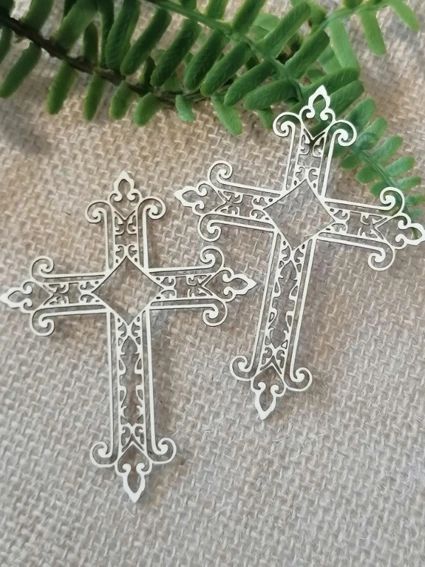 Елементи за декораци от бирен картон - кръст с орнаменти. Комплект от 2 броя.